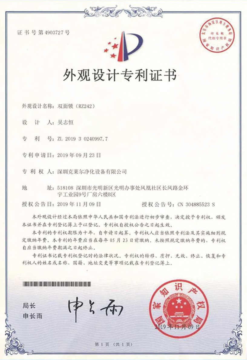 廣東克萊爾潔凈科技有限公司是一家集生產(chǎn)、研發(fā)、銷售于一體的專業(yè)潔凈門窗生產(chǎn)企業(yè)。 公司擁有現(xiàn)代化標(biāo)準(zhǔn)廠房10000多平方米,配備全自動(dòng)靜電噴涂流水線及 3000平以上萬級(jí)無塵生產(chǎn)車間,專供潔凈門及中空窗的生產(chǎn)裝配等。公司不斷引進(jìn)一流生產(chǎn)設(shè)備(如瑞士百超激光切割機(jī)、日本AMADA數(shù)控折彎?rùn)C(jī)、超聲玻璃清洗機(jī)等),采用國(guó)際最先進(jìn)的技術(shù)及裝備確保產(chǎn)品品質(zhì),是華南區(qū)域最具規(guī)模的專業(yè)潔凈鋼制門及中空潔凈窗生產(chǎn)廠家。公司在同行業(yè)率先通過ISO9001質(zhì)量體系認(rèn)證,并先后獲得多項(xiàng)專利認(rèn)證及榮譽(yù)證書。 KLE purification equipment Co., Ltd. is a set of production, research and development, sales in one of the professional clean doors and windows production enterprises.The company has a modern standard workshop of more than 10000 square meters, equipped with automatic electrostatic spraying line and more than 30 million level dust-free production workshop, specially for the production and assembly of clean doors and hollow windows. The company constantly introduces first-class production equipment (such as Swiss Baichao laser cutting machine, Japanese AMADA CNC bending machine...